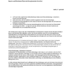 Bayern und Rheinland-Pfalz sind Energiewende-Vorreiter