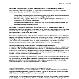 Die ImmoScout24-Analyse basiert auf geschätzten Marktwerten (prognostizierten Verkaufspreisen) für Bestandshäuser in 66 Skigebiets-Gemeinden (27 Deutschland, 39 Österreich) im Zeitraum 2020 bis 2025, ermittelt durch das Automated Valuation Model (AVM) von Sprengnetter. Als Bestand gelten Häuser, die mindestens drei Jahre alt sind. Die Preise für Häuser (Bestand) wurden im Schnitt auf 125 m² Wohnfläche berechnet. Die Preisentwicklung wurde berechnet als prozentuale Veränderung zwischen 2020 und 2025. Berücksichtigt wurden Gemeinden mit Skigebieten ab mindestens einem Pistenkilometer.