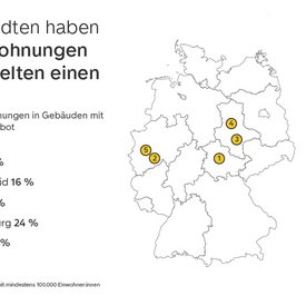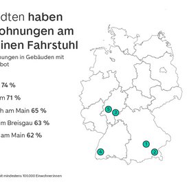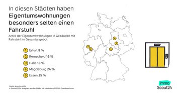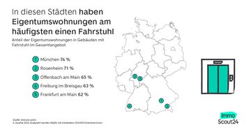 - In München können 74 Prozent der angebotenen Eigentumswohnungen mit Fahrstuhl erreicht werden – in Erfurt sind es nur 8 Prozent.